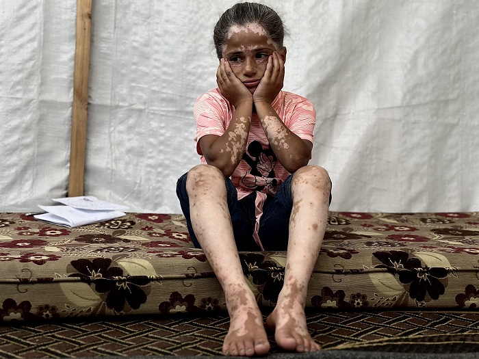 עזה, 15 במאי 2025 — בתוך אוהל מרופט בשולי מחנה פליטים בח'אן יונס, יושבת לנה א-שריף בת העשר, כששערה מכוסה שיבה לבנה ועורה מצולק בכתמים — עדות שקטה לחיים תחת מתקפה מתמשכת. 19 חודשי הפצצה, רעב וטלטלה גופנית ונפשית הפכו אותה מילדה מלאת חיים לשבריר של עצמה.