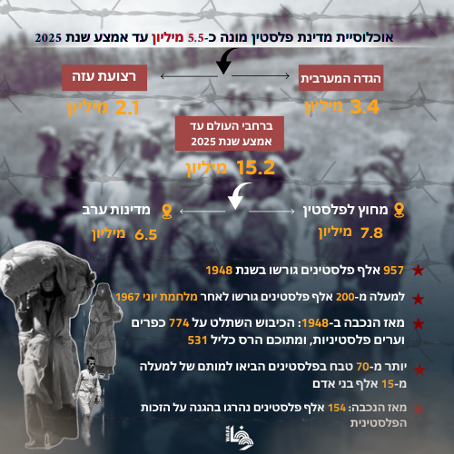 77 שנים לאחר הנכבה, מספר הפלסטינים הוכפל כמעט פי 10