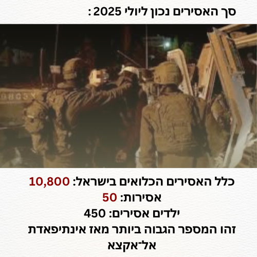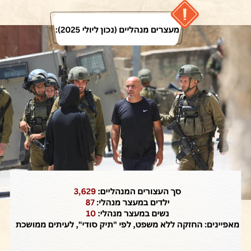 נתונים מרכזיים על מעצרים פלסטיניים – ינואר עד יוני 2025