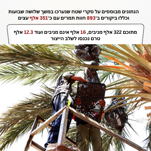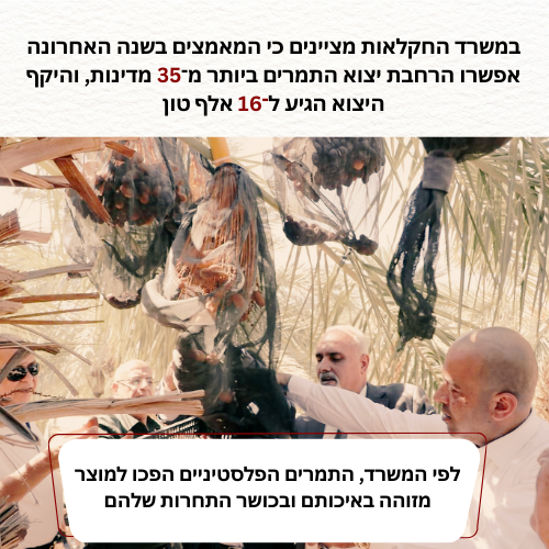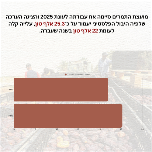 מועצת התמרים: היבול הפלסטיני לעונת 2025 מוערך בכ־25.3 אלף טון