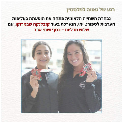 שלוש מדליות לנבחרת השחייה הפלסטינית ביום הראשון של האליפות הערבית.