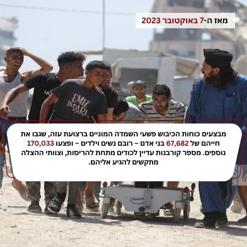 עלייה במספר ההרוגים ברצועת עזה ל-72,072 ובמספר הפצועים ל-171,741 מאז תחילת המלחמה.