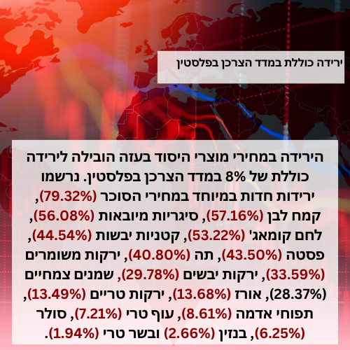 הלמ״ס הפלסטיני: ירידה חדה במחירים ברצועת עזה בספטמבר והשפעה ניכרת על מדד יוקר המחיה בפלסטין