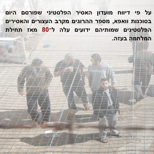 מספר ההרוגים מקרב העצורים הפלסטינים עלה ל־80 מאז תחילת המלחמה בעזה.