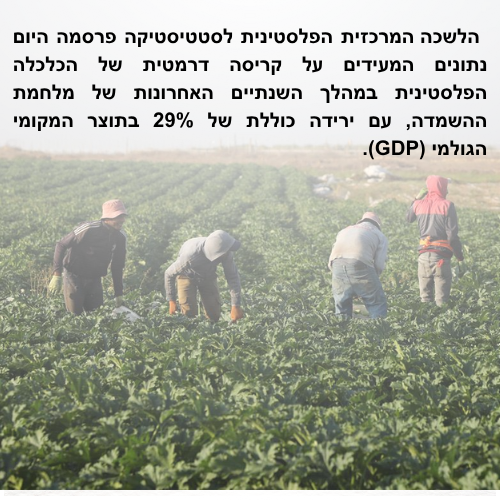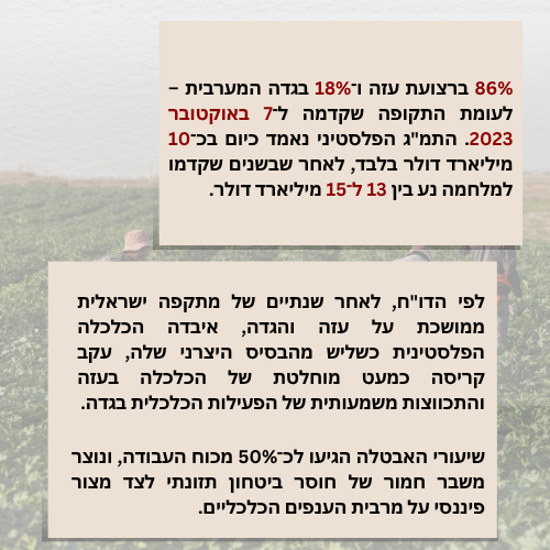 התמ"ג הפלסטיני צנח ב־29% במהלך מלחמת ההשמדה – ירידה של 86% בעזה ו־18% בגדה.