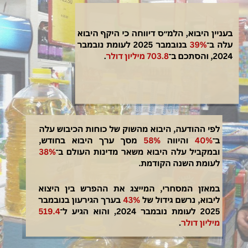 הלמ״ס: גירעון המאזן המסחרי עלה ב־43% בנובמבר האחרון.