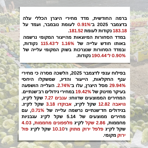 זינוק במדד מחירי היצרן בפלסטין ב־2025: עלייה של 32.9% על רקע התייקרות חדה בחקלאות.