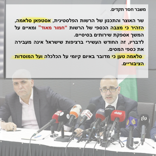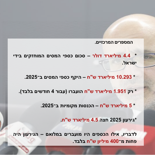 שר האוצר: משבר כספי חמור ברשות – סכנה לשירותים הבסיסיים וללא תחליף לכספי המסים.