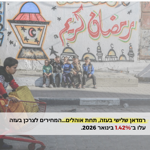 רמדאן שלישי בעזה, תחת אוהלים...המחירים לצרכן בעזה עלו ב־1.42% בינואר 2026.