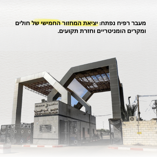 מעבר רפיח נפתח: יציאת המחזור החמישי של חולים ומקרים הומניטריים וחזרת תקועים.
