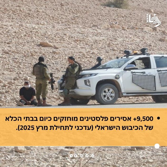 עלייה חדה במספר האסירים הפלסטינים בבתי הכלא של הכיבוש מאז אוקטובר 2023 (עדכני ל 1.3.25)