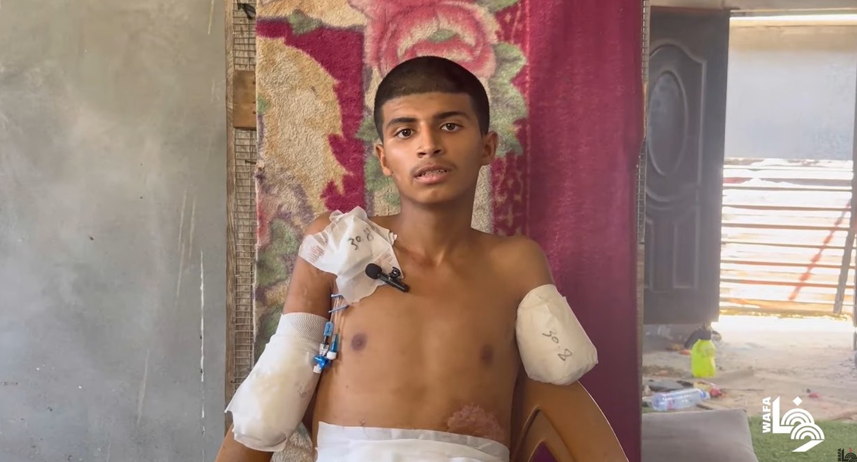 הנער הפלסטיני, דיאא אל-עדיני, איבד את שתי ידיו בהתקפת כוחות הכיבוש על דירה במגדלי אל-קסטל במזרח דיר אל-בלח