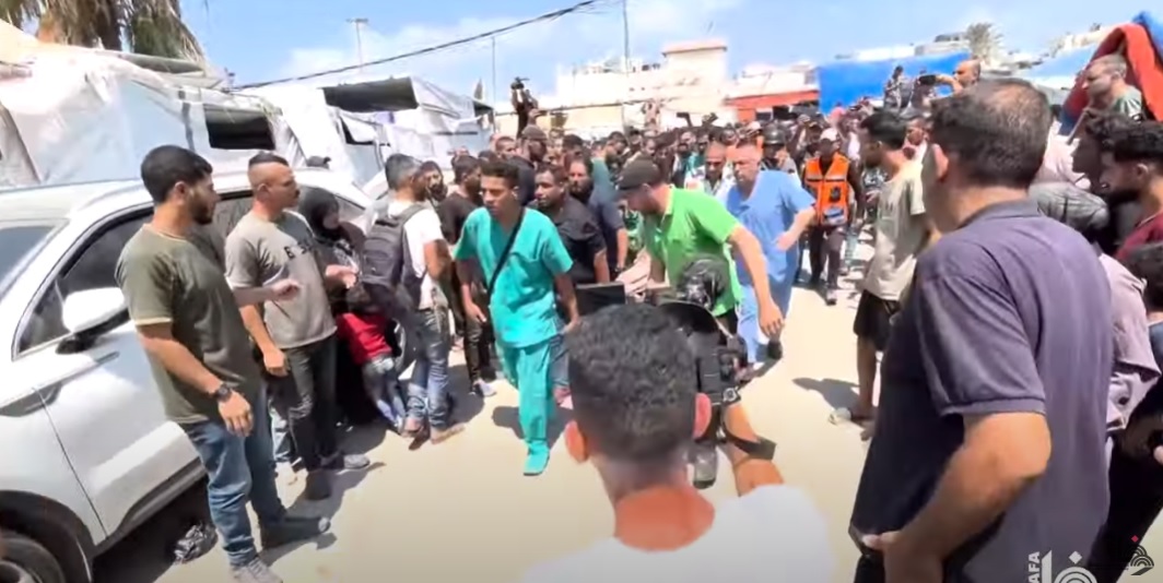 כוחות הכיבוש הפציצו אוהל לעיתונאים בבית החולים אל-אקצא בדיר אל-בלח במרכז רצועת עזה